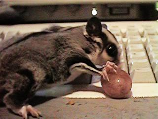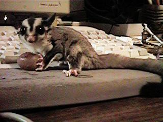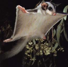 What's a Sugar Glider? They resemble North American flying squirrels but are actually classified as Petaurus breviceps, a small nocturnal marsupial from Australia. They measure about six (6) inches in the body with the same length in the tail. Sugar Gliders have a "mink"-like coat that is gray, with a black stripe that goes up the body. They also have excessive skin between the front and rear legs. They use this when gliding...making them look like a kite. Sugar Gliders only weigh between 90 and 130 grams. They can live about 8 years in the wild, 15 years in captivity.